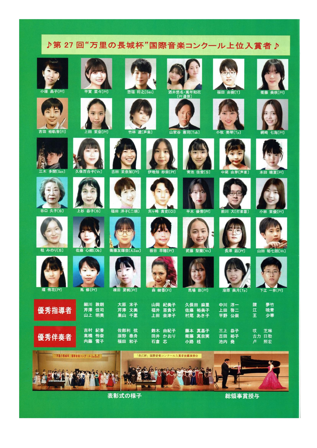 2025年8月12日に行われました、2025SAKURA日本国際青少年アーティストコンクール本選にて、松口理子先生がフルート伴奏を担当し、金賞受賞致しました。